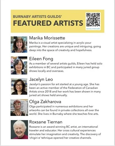 Burnaby Artists Guild Welcome to our vibrant community showcasing the incredible talents of Burnaby artists and their mesmerizing artworks. Our Artists About Us